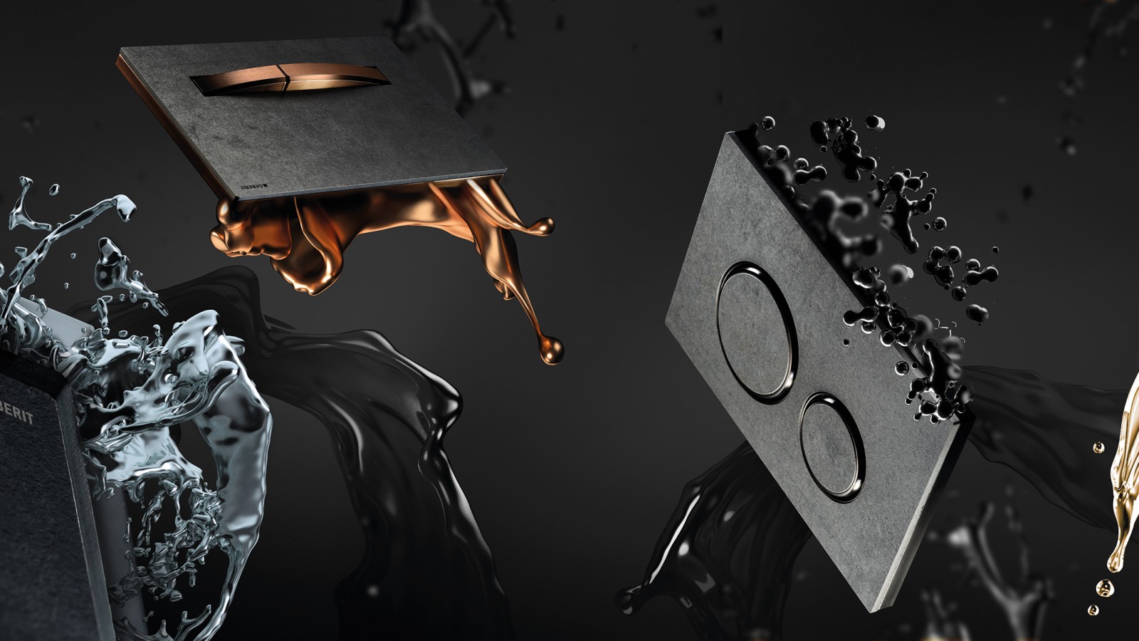 Geberit flush plates come in all the hottest finishes, like matte black, brushed nickel, and classic polished chrome, now available with 'precious metal' accents like brass and rose gold. Choose from standard surface materials like metal, glass, and plastic, or, for an even more striking look, customize the flush plate surface to match the wall or create a bold accent.